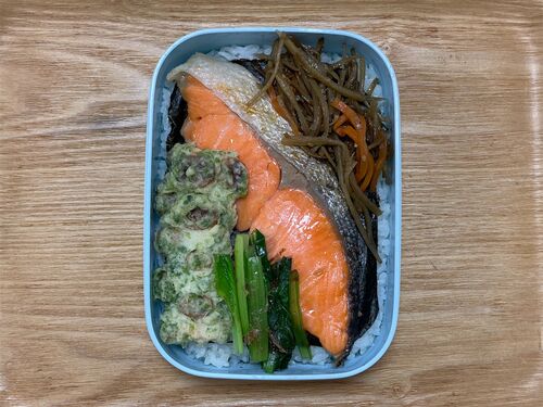 銀ジャケ(妻) かき揚げ(長男) コロッケ(長男) ちくわの磯辺揚げ ごぼうのきんぴら 小松菜の和え物