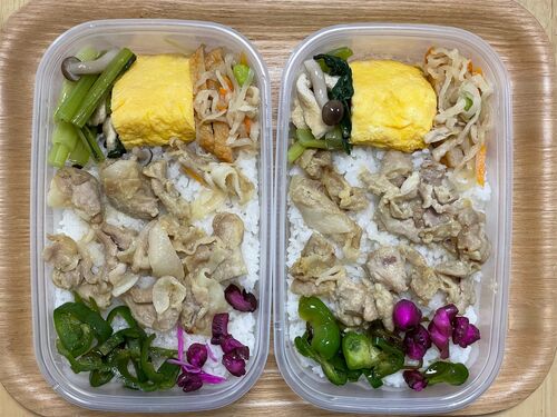 ごはん 豚肉の西京焼き ピーマンの塩昆布和え しば漬け 卵焼き 小松菜とあげとしめじの煮物 切り干し大根の煮物
